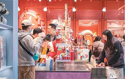 ">游客在上海南京路选购盲盒潮玩。 王 初摄(人民图片)